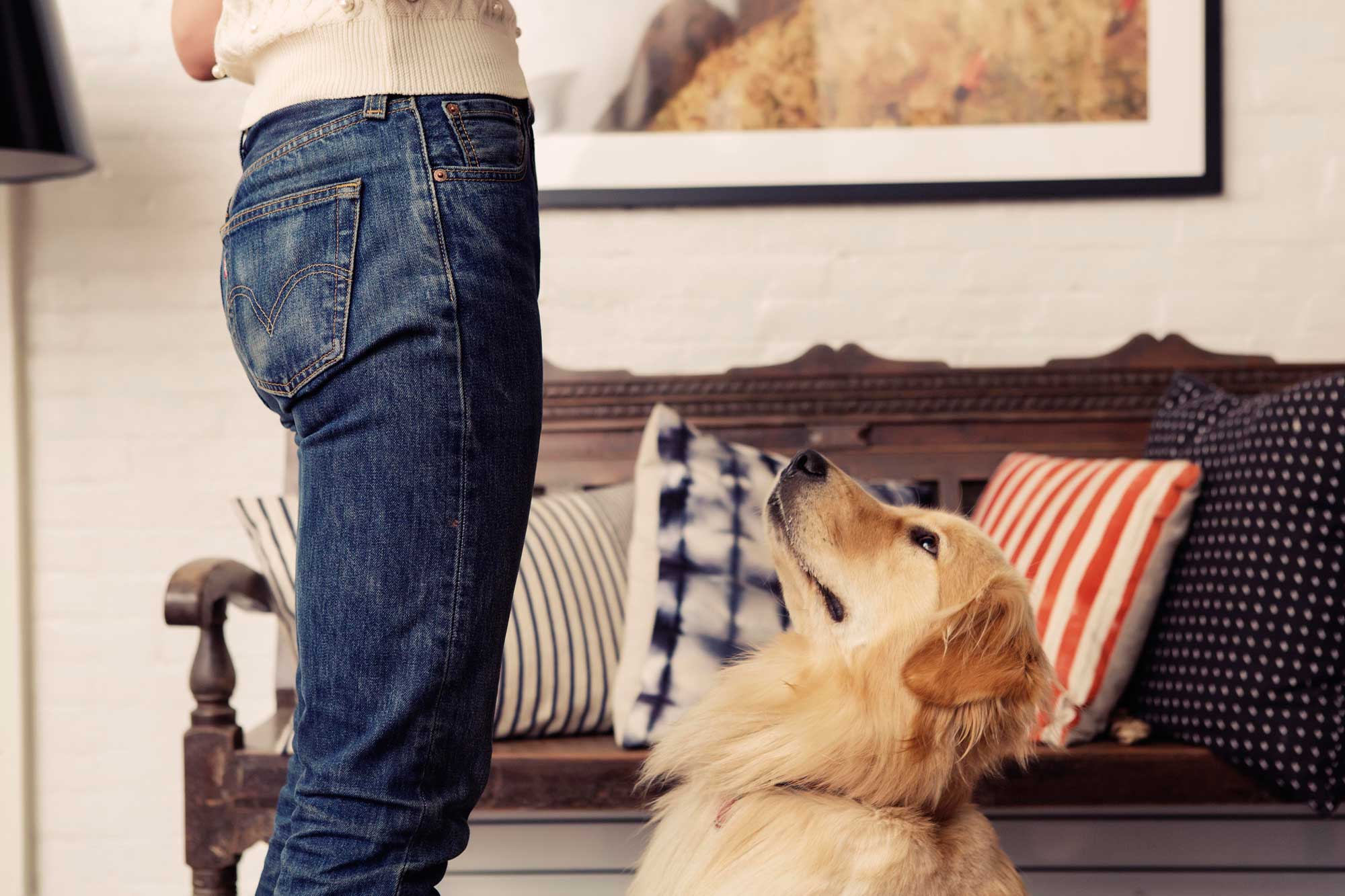 It’s funny, I find myself unexpectedly stymied by the question of these jeans. (Seeing as I pride myself on the ability to wax rhapsodic about just about anything — straw hats, bike shorts, Lee Miller, the one-piece bathing suit, and the minor and major personal style fluctuations of famous strangers, among other recent topics on Vogue.com — this feels noteworthy.) My jeans are so wholly unremarkable, you see, except in the most important way, which is that they fit me perfectly, and much like anything that fits perfectly they immediately became irreplaceable. They are my blank slate, my starting block, the place from which I can build; the cotton and indigo version of comfort food. And so they sort of defy definition. Sally Singer once called them “’90s supermodel jeans,” but to me they’re just jeans — true and blue and classic looking, weathered just enough to hint at a life beyond business meetings and city sidewalks; easily imagined on a Charlotte Rampling or a Babe Paley (on the streets of Paris or at home in the garden, respectively); strong enough to outlast any number of puppyish nips and alligator-like clamps from Hugo’s jaws (and narrow enough at the hems that he, now, though many months older and wiser and only very occasionally prey to the attention-seeking brat attacks of a younger hound, would not be able to find any purchase there). Hugo came into my life around the same time as these jeans, which is enough to get me feeling a little nostalgic. The best part is, they’re both getting better with age. Hopefully we all are.