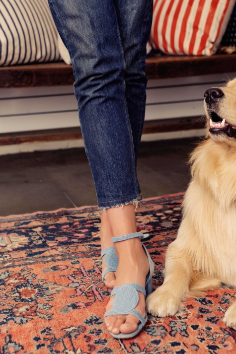 My jeans are by Re/Done, whose mission, it seems, is to take old Levi’s and tailor them leaner and tighter and into a shape more flattering to the modern body. By the advertising it would appear that a majority of that focus is spent on perfecting the rearview. I can’t comment on that beyond the fact that since my first pair of Re/Dones, a distressed model given to be by my favorite denim guru (Vogue.com’s Kelly Connor, without whom I might never have been bold enough to try anything noteworthy in denim), I now own three pairs. I have never felt more understood by a jean: They hit right at my waist, with enough give that I can wear them on a road trip to Joshua Tree from Palm Springs, as I did earlier this year sitting shotgun in an embroidered, cropped vintage blouse, but also streamlined enough that in Paris during fashion week, paired with a charcoal-colored cashmere turtleneck, I feel entirely trend-resistant. Their strength is in their silence; they look their best with a white T-shirt and a shoe with a bit of a heel. And oh, these shoes! As if you needed another reason to love denim, here it is in a ladylike low-heeled sandal that goes to work and brunch and drinks and even, yes, the dog park. But the jeans. They say nothing so much as “we fit perfectly,” and considering how much I typically have to say, well, that’s enough.