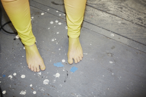 “How are Rob Pruitt’s jeans not covered in paint?” we asked ourselves after having the great pleasure of meeting him in his studio in Gowanus, Brooklyn last month. There was, as one might expect of an artist’s work space, paint everywhere – in tubes, and tubs, and cups, and palettes; on the floor, the walls, the assistants, and Rob’s face, even. But his Levi’s jeans were pristine, save for two sizable slits in the knees. How? We still don’t know. But if we get a second with him next Tuesday night at Barneys, where he’ll be doing a jean-painting event in collaboration with J Brand, we’ll most definitely ask.