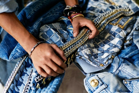 It was during the recent spring collections in Paris, when it seemed every French house – from Chloé to Saint Laurent to Louis Vuitton – was sending denim down their runways, that we photographed Balmain’s Olivier Rousteing wearing his own favorite double-denim look in a pile of the couture-jean pieces he’d designed a year earlier. Chills! There were the Balmain jackets we had loved (and wanted so badly to buy) at the beginning of the year, the blue-on-blue that Olivier was wearing currently, and the constant parade of newness on the runways buzzing in the background – the past, present, and future of our number one fabric all colliding in a single sitting.