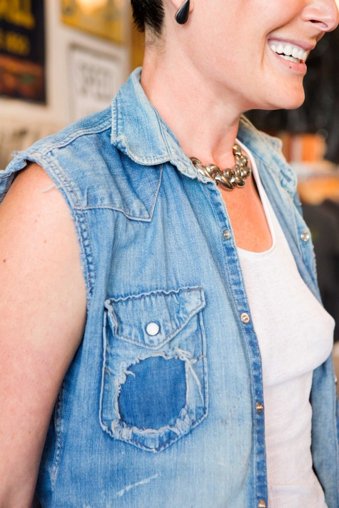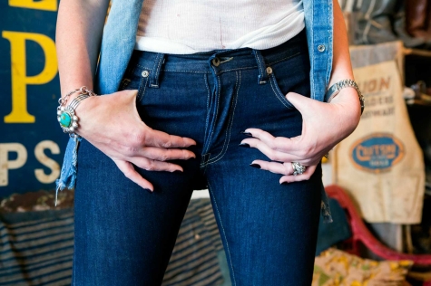 Now Chuck, who has worked behind the scenes doing fabric development for some of L.A’s most successful denim brands (Current/Elliot, PRPS, 7 For All Mankind), is launching his own line – a unisex collection of denimhead-worthy styles made with the very best selvedge. If you can believe it, Chuck and Madeline are wearing the same jean in these pics (“Chuck wears them from raw, I don’t,” Madeline confessed). Denim really is amazing, isn’t it?