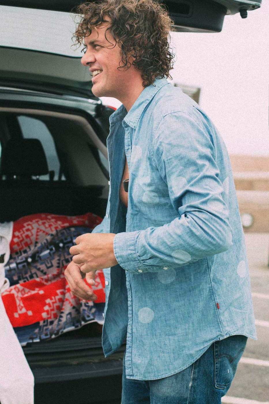 But back to the wetsuit…because the wetsuit meant two things: 1. That we got to witness Michael, who lives in San Francisco’s North Beach with his wife and two kids, catch a few waves, and 2. That we got to watch his post-sesh quick-change in the car. We realize that might sound like a strange thing to get excited about – we’d just met the guy! – but, Michael, we’d been told, is one of the most stylish creatives at the company, which explains why he’s been entrusted with its brand environment. What’s that, you ask? Take any Levi’s window or store display, cooly-dressed mannequin, print ad campaign or a TV commercial (if you haven’t caught the latest, click here now), and chances are Michael had a hand in styling it.