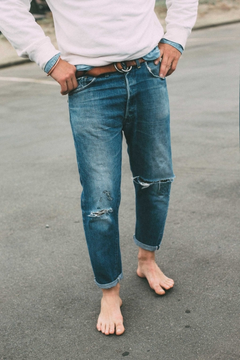 Oh, man. 1. The white standard fit Red jean. Amazing. 2. A replica of the first Levi’s jean. That was rigid. The one from 1890, with just one back pocket, cinched back and suspender buttons. 3. And then, these.
