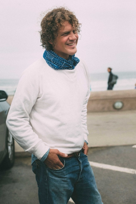 When we first saw Levi’s Michael Giordano, he was wearing a wetsuit – a full one, because, despite it being summertime, the water and wind in Pacifica, California, where he surfs most mornings, was cold. He spotted us in the beach’s parking lot (was it the camera gear that gave us away, or the city-girl blazers and button-downs we wore?), and he greeted us warmly – good energy everywhere.