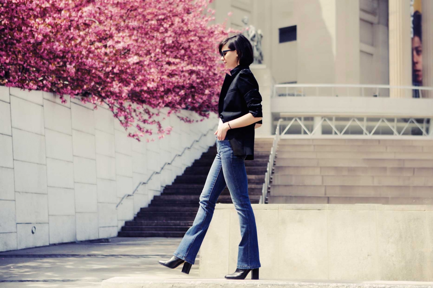 This spring, I’m bringing bootcut back. Remember that fit? The one that made our legs look leaner and straighter from hip to heel? The one we wore in the late 90s and early 2000s when the word “skinny” referred more commonly to a body type than a blue jean? I love a bootcut, always have, and I’m thrilled that brands are revisiting them now, cutting them in the best, technical denims, and updating the proportions to look current and seriously flattering (goodbye, hip-huggers, hello, high rises!). The one I just discovered is DL1961’s Elodie style, which comes in their DLX Hybrid fabrication, a 4-way stretch with a high cotton content, so it feels sturdy and reacts well to vintage-inspired washes. Do you like them on me? I really do. With a smart jacket and my 3 1/2-inch block-heeled boots, especially.