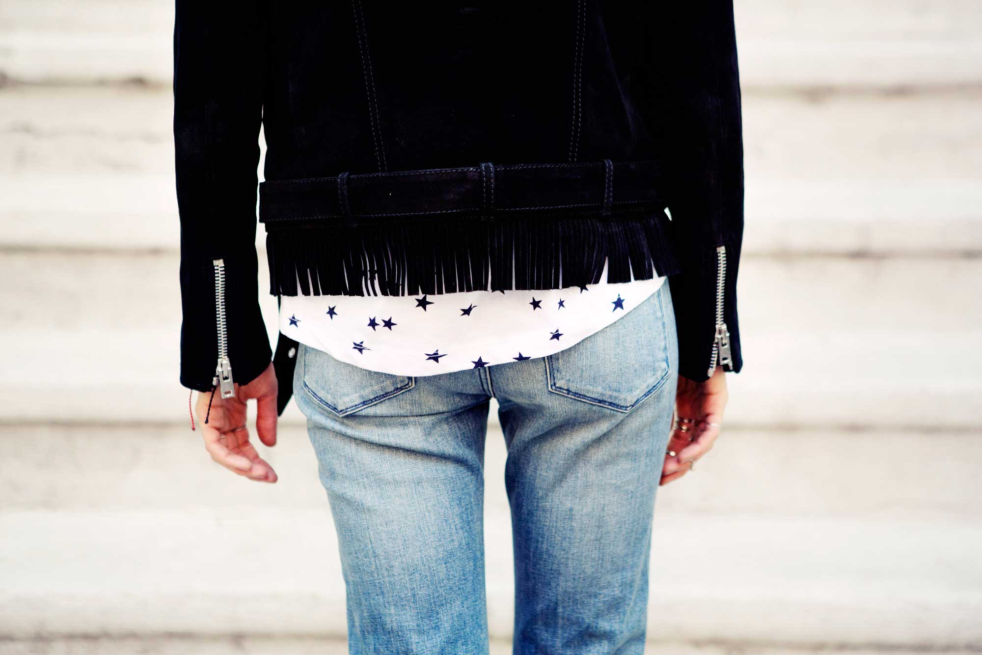 “I’d been looking for that cropped, flared jean that’s so important right now, but I hadn’t been able to find one that fit me correctly,” said Jessica Minkoff, the senior market editor at Teen Vogue on a particularly gorgeous day in NYC recently. It’s a personal thing. “My body type, I don’t know, I just can’t pull that wider leg look off like Leandra [Medine], and Jenna [Lyons], and Jennifer [Fisher],” she said. “I love it on them, but not on me.” The compromise? 3×1’s W25 Crop Baby Boot. “They do exactly what I was looking for – that little flare that’s like a bootcut, but shorter. Plus, I like the frayed hem.”