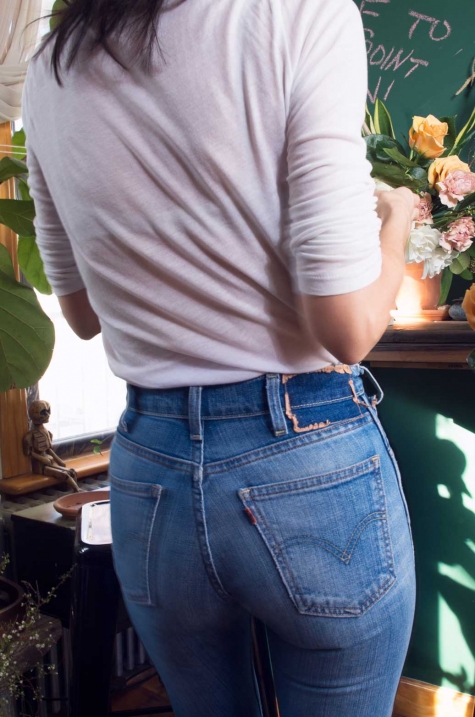 Eh. Just leave it. I feel like that’s the beauty of an old pair of jeans—you’re past the point of treating them like a precious commodity—you’re still in love but you realize that everything that happens to them just adds to the story (like, say, ripping a hole in them when Jean Stories comes to visit).