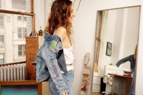 “I rarely ever wear new denim; all of the shopping I do is for vintage,” explained Mara Hoffman, the New York designer whose print-driven clothes are must among women of the global, haute-hippie style persuasion. So where on earth, you ask, did she score the perfect-fitting Levi’s Orange Tabs she’s wearing here? At A Current Affair, the L.A. vintage show that recently started traveling to N.Y. “Hands down the best denim,” she said. And her jacket, which is covered in hand-drawn characters from “The Simpsons”? (Scroll down. Really, it’s something you don’t see every day.) “At Narnia in Williamsburg,” she confided. Write this down, guys. It’s serious intel!