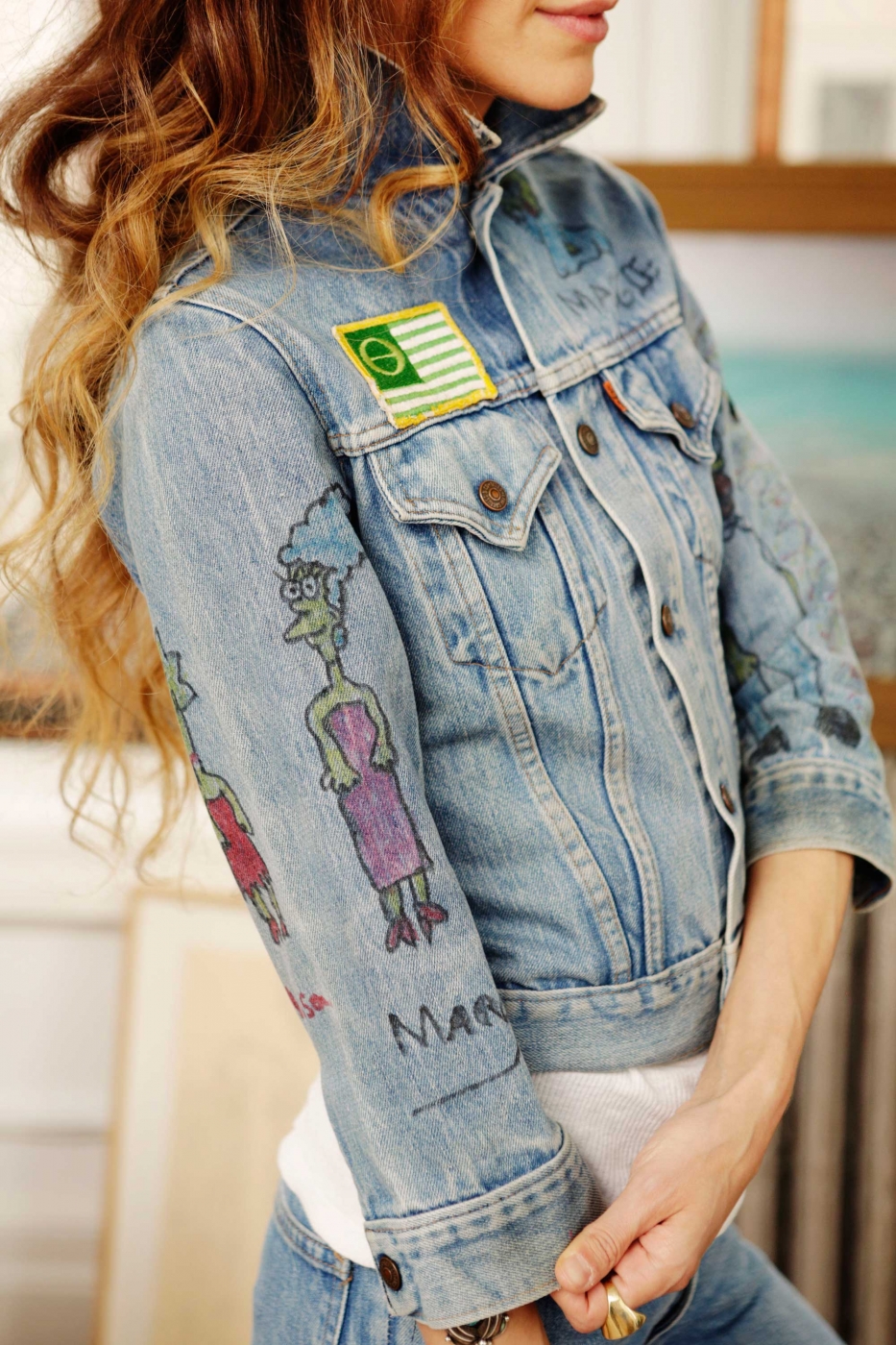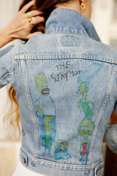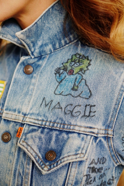 About Mara’s jacket… Scribbled inside the right chest pocket in permanent marker is a name: Nick R. Ferrara. Presumably, Nick is the artist responsible for covering the jacket in “The Simpsons.” Who knows. Mara is dying to find out. And now, we are, too! So Nick, if you’re out there, send us a note, a tweet, a DM via Instagram (@jeanstories). We want your story, too!