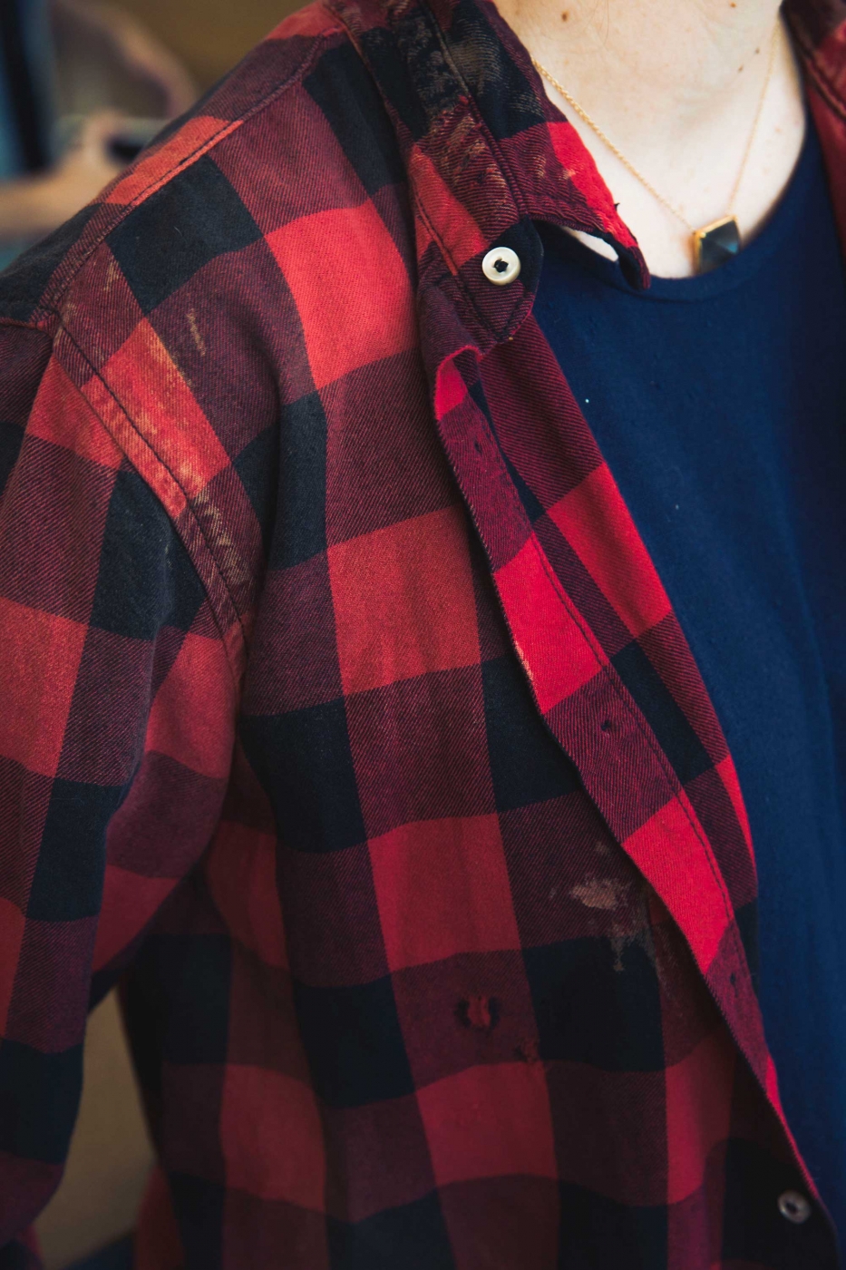These are the women’s Owen – a straight slouchy slim fit – in the Mendocino wash. My shirt is actually a men’s sample, but we make it for women, too, and it has the same wash, same fabric. This shirt is an example of where we’ve tried to set ourselves apart – it’s expensive, but we didn’t compromise in terms of what we wanted to do to it with the wash, and in the end it’s been a best-seller. What we feel passionate about it usually what works best, and it just reaffirms that following our hearts, or doing what we really get excited about, is probably going to be what other people get excited about, too.