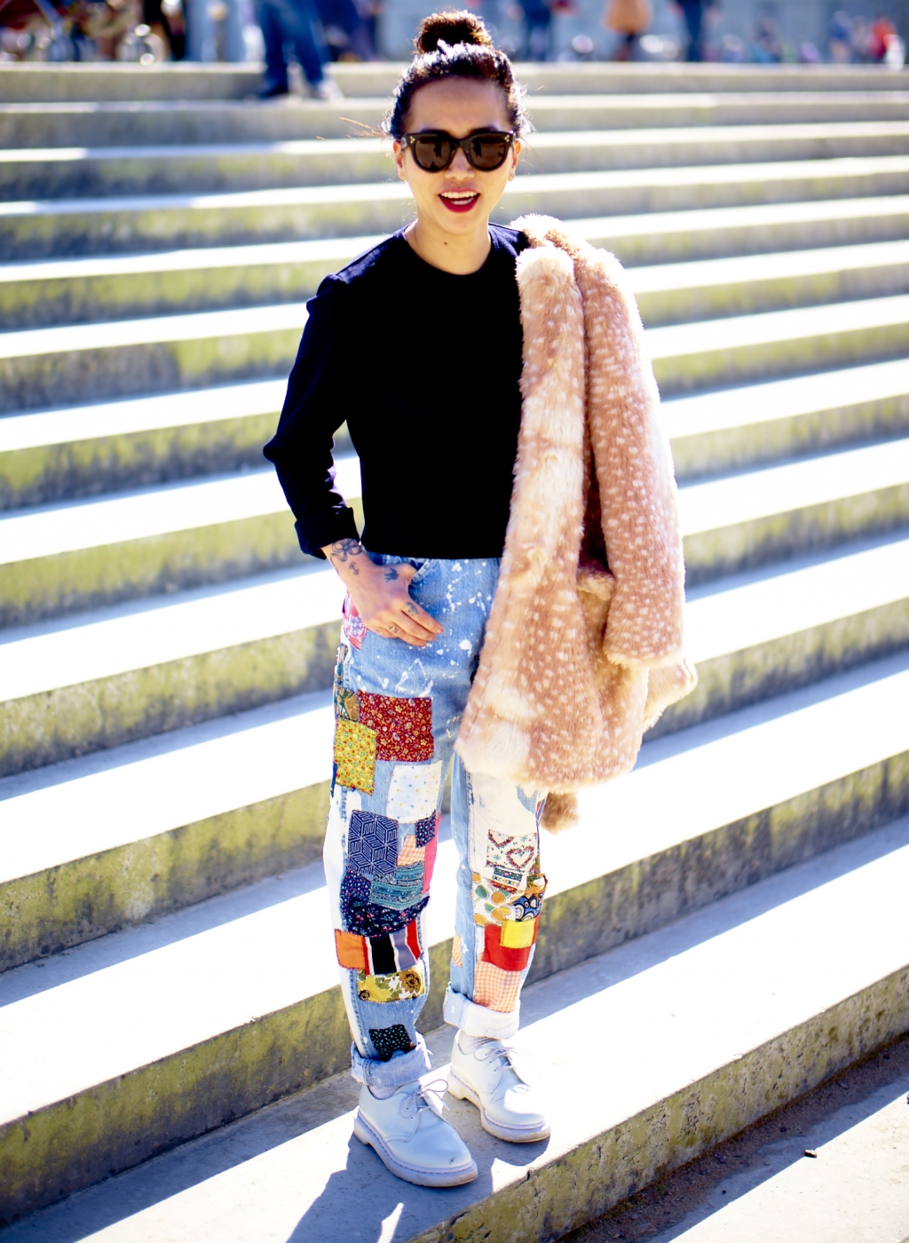 “I never dreamed in my life that a pair of vintage jeans could look like these, and then when I saw them I couldn’t imagine a day in my life without them,” said Olivia Kim about her patch-covered Lees. “It just goes to show you – you really don’t know what’s out there, because, just, you don’t know!” Given that a big part of Olivia’s job at Nordstrom, where she is the director of creative projects and the curator of the store’s monthly themed pop-ups, is about discovering un-seen stuff, it figures she’d show up wearing a once-hidden treasure. I was expecting Olivia to bring exactly that…and one other thing: her infectious energy, something she is as famous in the fashion circuit for having as her totally singular, totally colorful and cool sense of style.
