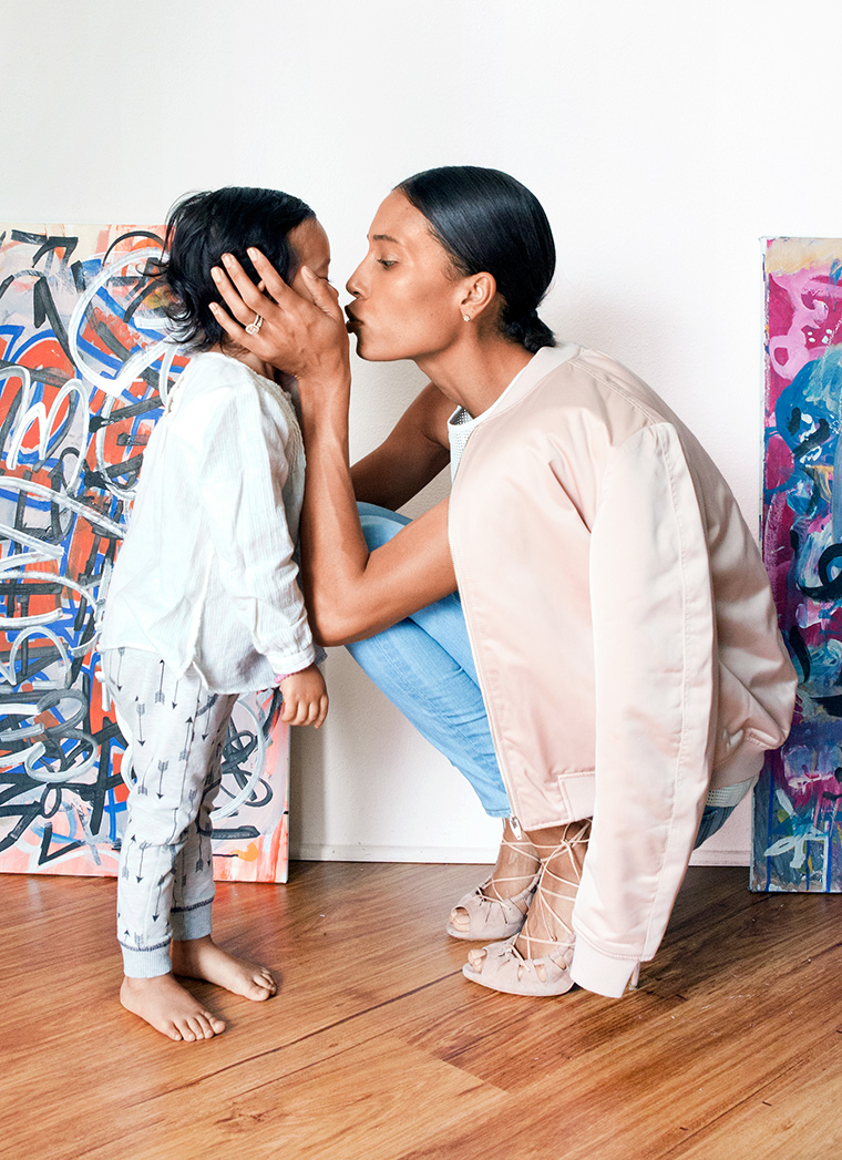 When a trusted source said we needed to meet TyLynn Nguyen, the L.A. model who recently launched her eponymous lingerie collection, TyLynn Nguyen Intimates, we did what anyone does these days: looked her up on Instagram! Sprinkled amongst photos of her in different outfits, personal and work-related, she was in…jeans. Skinny jeans. So we thought she’d be perfect for J.Crew’s newest Toothpick, made of Cone Denim in a fresh, light-blue wash for spring. We photographed TyLynn and her daughter Lotus, looking sweet in stripes from Crew Cuts, in their east L.A, neighborhood. Good genes…and jeans were everywhere.
