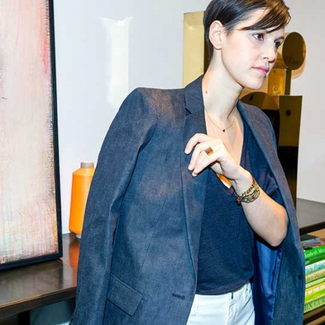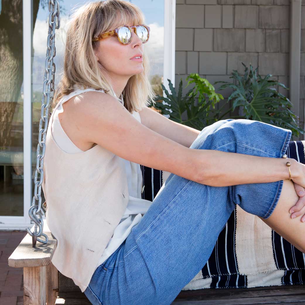 J.Crew’s blue-jean wide-legs made us immediately think of…Jesse Kamm! The L.A. designer, who’s had her own label since 2005, is best known for her perfectly non-trendy, minimalist pieces…and the same words could be used to describe her personal style. That should give you a good idea of why Jesse and these Rayners go together so swimmingly. We brought them to her home and studio on L.A.’s Mt. Washington – a modern 1949 house on a hill – shared with her husband, Lucas Brower and their son, Julien. And, sure enough, they fit seamlessly with pieces from her collection. Who doesn’t love a jean that’s so versatile?
