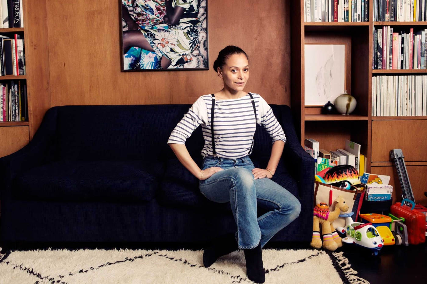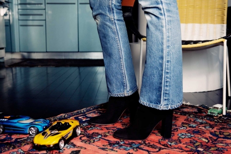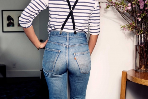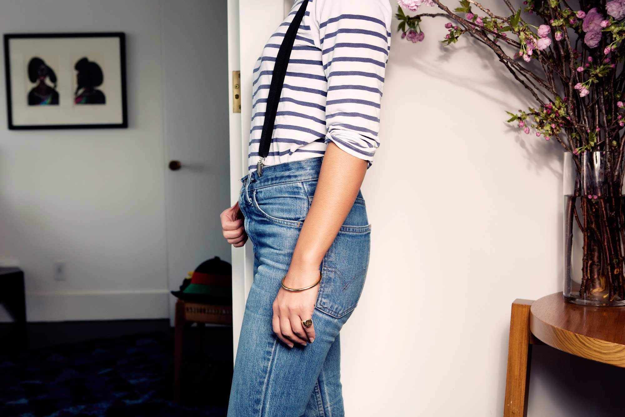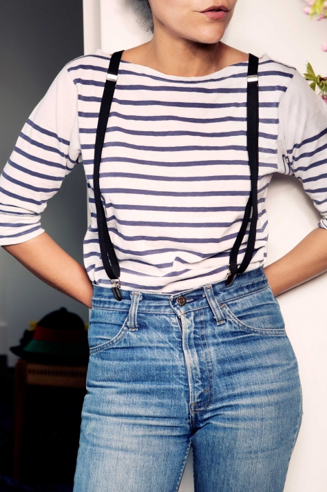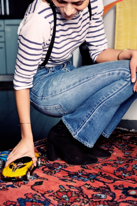 “I feel confident that when the world moves on to the next thing, I’ll still be wearing these,” says Samira, who is the Fashion Director at Elle magazine. We’re sitting in the living room of her Williamsburg apartment (shared with her toddler son Lex) and she’s taking me through her favorite jeans – the vintage Levi’s of forgotten origin she’s had for 15 years (in these photos), but that are perfectly worn in. With their high waists (“they make me feel like I have longer legs”) and bootcut bottoms, they look so right right now. But they haven’t always been considered by everyone the epitome of style. For instance, “Jack and Lazaro used to laugh at me for wearing mom jeans,” Samira says smiling, remembering how the Proenza Schouler designers have teased her. Who’s having the last chuckle now?