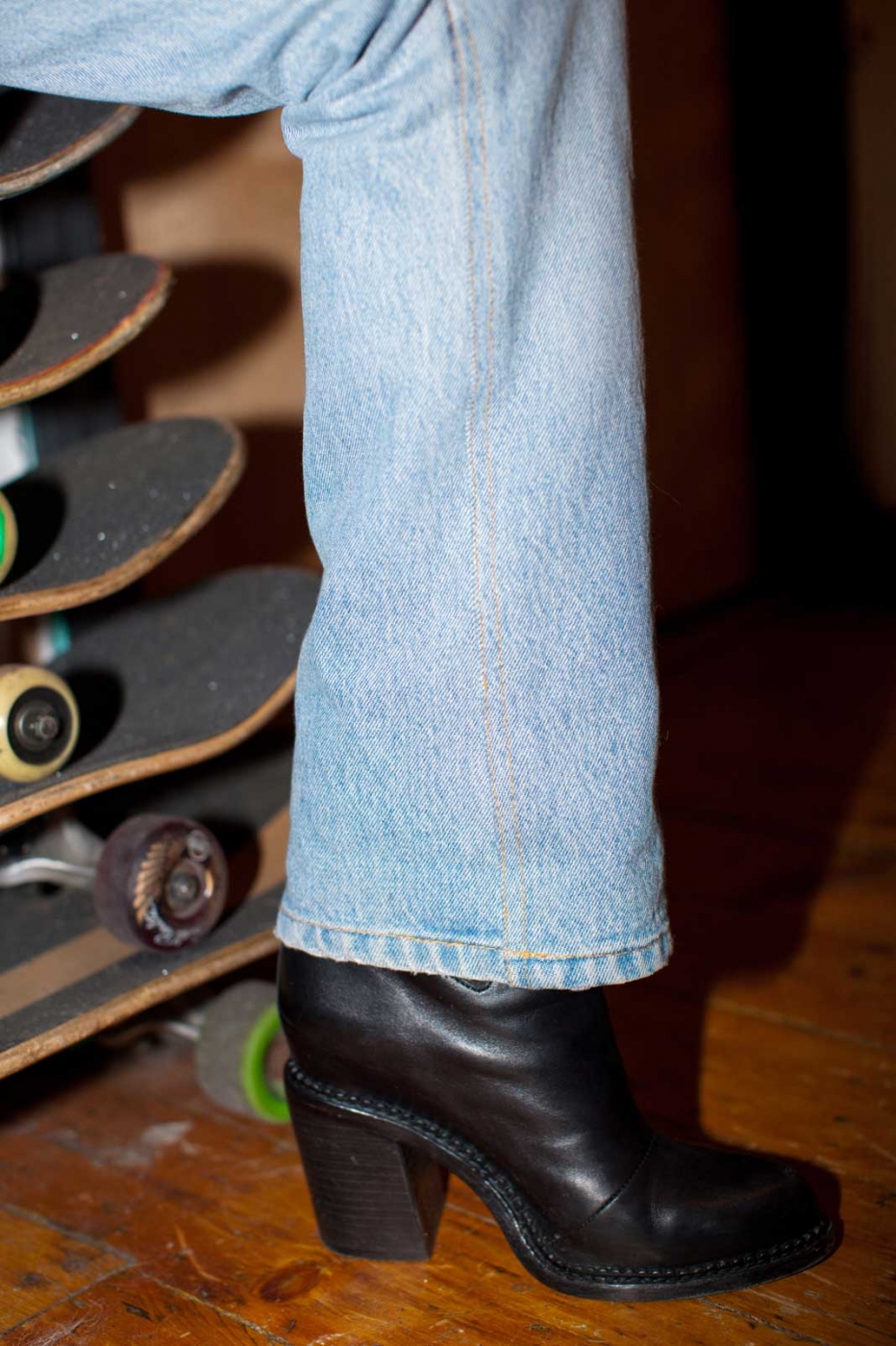 Yeah, I brought them to New Orleans for Christmas and New Year’s, too. I went with Siobhan just to hear good jazz, and because we’d never been. I also went to Iceland this summer where I wore these jeans with Converse and went hiking and got knee deep in volcanic mud. It’s so beautiful there, the landscapes are insane. You go from volcanic rock to blue ice…Icelandic horses everywhere. But really these jeans are great because they’re thick and durable, and I can wear them in my studio and not worry about getting hot metal or wax on them and it burning through to my skin. I do have other jeans but they don’t get too much use. I appreciate a skinny jean, but at the end of day it’s not what I’m most comfortable in. Most of the time I’m in my studio, and these are what I can actually get work done in.