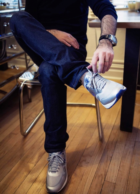 The Blumenthals had us over to their Gramercy apartment one Saturday morning to talk about denim. Neil sticks to Acne these days, Rachel likes her jeans skinny, and Griffin wears his slim cut, just like daddy. He also shares his dad’s affinity for sneakers, and has possibly the most adorable collection of little Nikes ever. You wouldn’t guess it by looking at the simple, cool dark denim they wear now, but Neil has a Cross Colours moment in his past, and Rachel may or may not have Bedazzled some jeans during the Britney-Justin era. You have to hear them tell it. Neil first…