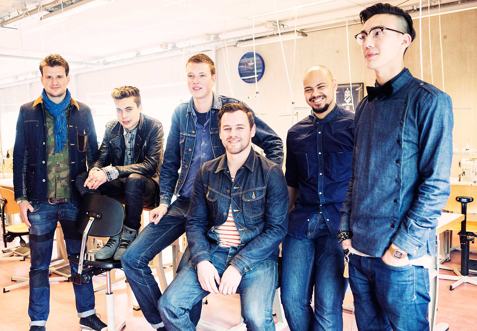 Day three of our trip to Amsterdam: We visited the Jean School! This is where a group of 45 students are learning every aspect of the business, from cutting and sewing, to washing and retail. We got to meet a handful of the guys attending the three-year program, a division of the Regional Community College of Amsterdam, and who love denim as much as you can imagine. These are the designers of the future, the people who will probably be responsible for some of the industry’s best-looking jeans some day. And – sorry we have to say it – in their own selvedge (much of it self-made) these promising students and their wares were pretty easy on the eyes, adorable even! Check out Mike van der Zanden and his line of selvedge denim and leather bags, Dyemond Goods, and Jazz Aughton (@mraughton on Instagram), who calls himself the dynamic denim developer of his new venture, Jazz Jeans. But all cuteness aside…