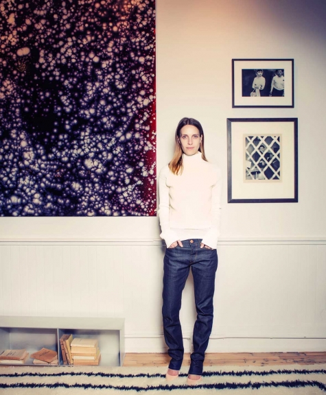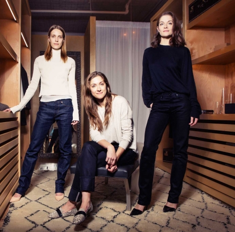 The three lounged on the bed, very cozy, yet very cool, in sweaters and jeans. And we talked about those jeans – a recent collaboration with 3×1 (a Jean Stories favorite), whose SoHo headquarters and store happen to be just a few blocks away from The Apartment. For fall/winter, Vanessa and Kate (above right), who designs the collection The Protagonist (available through The Line and the Apartment), created a straight-leg selvedge jean that has us re-thinking our whole denim wardrobes (not to mention the general assumption that raw denim can’t be worn with, say, sexy Céline stilettos). The Line x 3×1 comes in black and in dark blue, and it proves that a classic men’s style jean can be ultra-flattering on women, too. We’ll let them explain…