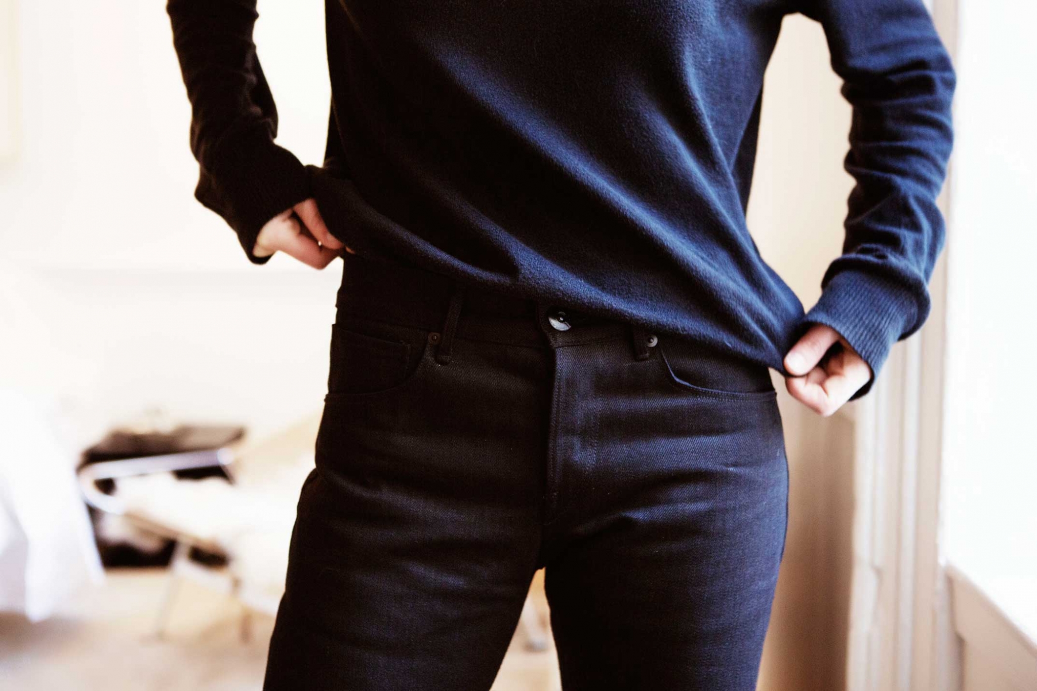 Kate: We also added weight to the width of the waistband to account for hips. The most interesting thing about doing a man’s jean for a woman is that it’s made of selvedge denim. The selvedge runs straight all the way down, on the outside seam of the leg. Normally, for a women’s jean they don’t use selvedge because it’s hard to fit properly [because of women’s curves]. The selvedge, I think, is the main indication that it’s a very straight leg.
