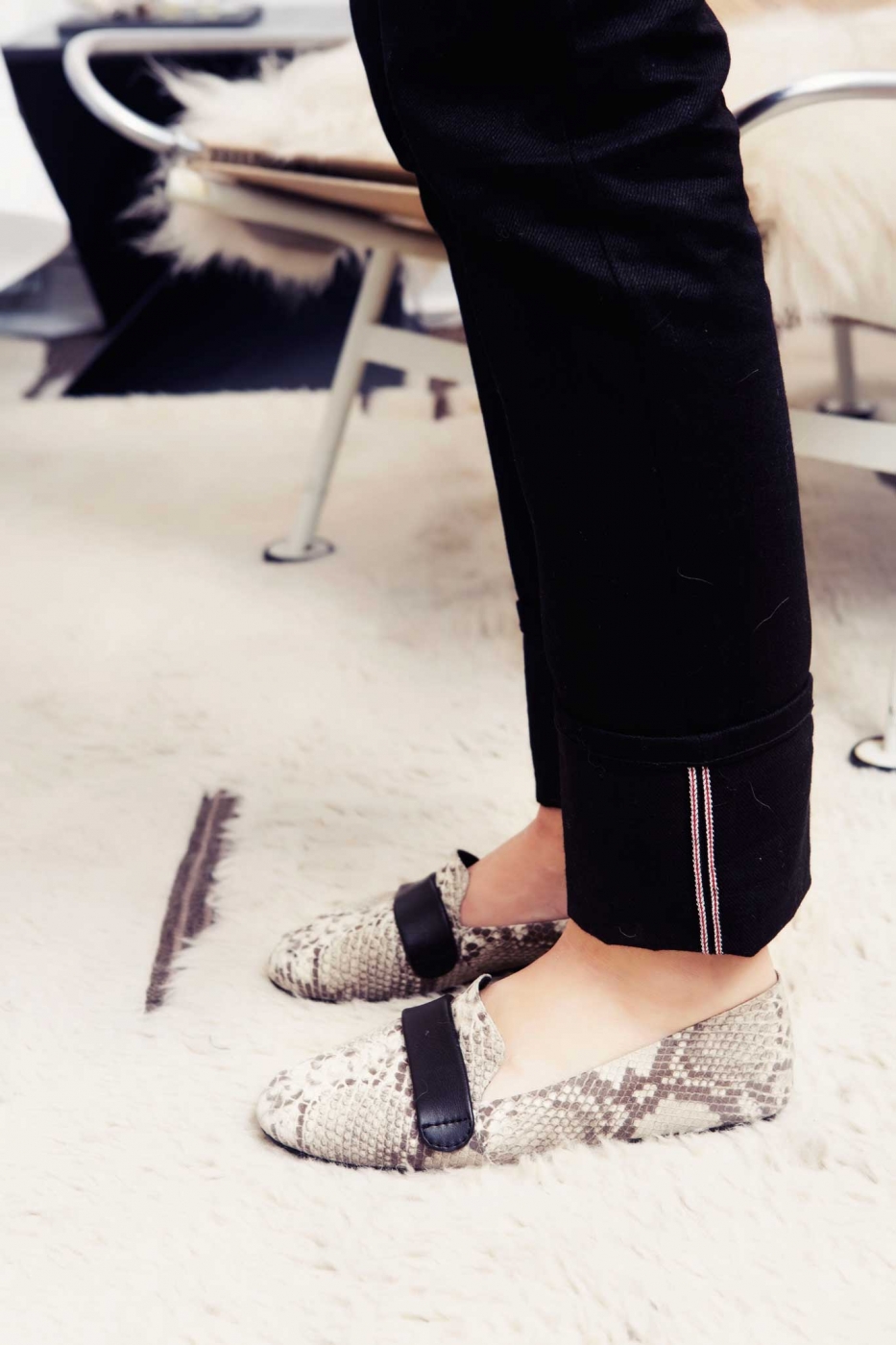 Morgan: I always wear them with flats. I always cuff them and I always just wear them with a t-shirt or a crew-neck sweater.