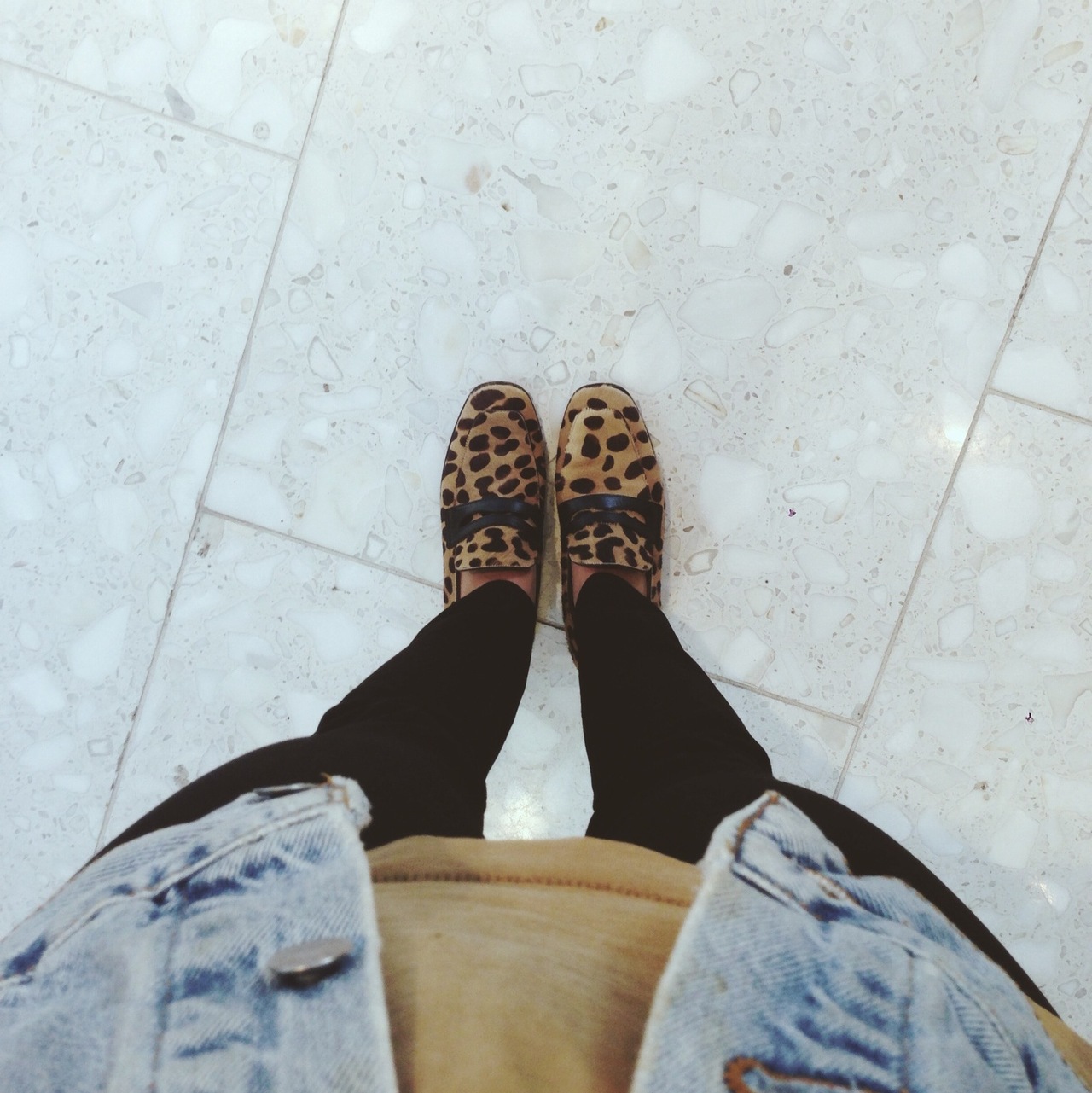 LEFT “I’m wearing vintage Levi’s 501s that I got at the Rosebowl flea market back in high school. I live five blocks from the water [in Venice, California], so I often pair a one-piece swimsuit with a classic vintage jean for a look that can go straight from brunch to beach.” CENTER “In this look: a vintage tee, Levi’s denim jacket, COS black jeans and Céline leopard loafers. I often throw washed-out blue denim over a black jean to lighten things up.” RIGHT “This is a Saint James striped tee, with R13 Slouch Skinny jeans and white Vans. I’m a jeans and t-shirt girl at heart, and this look epitomizes that. It’s both comfortable and classic.”