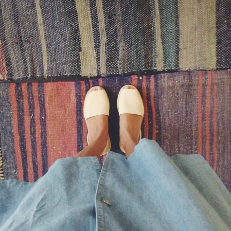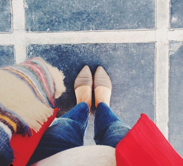They were all taken from, well, the top – with denim pieces expertly styled – on pretty backdrops, from sand, to cement, to green grass, to richly hued rugs. Who was behind the camera, above it all? We Googled, and found a tumblr belonging to Kate Brien, the L.A. stylist, whom we e-mailed right away.